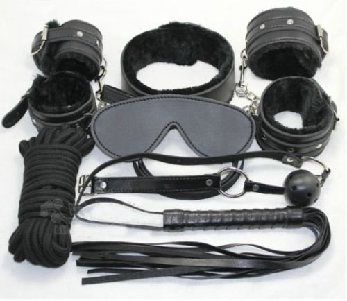 7pcs Bondage Set Kit Rope Ball Gag Cuffs Whip Collar Blindfold Adult Sex y Toy